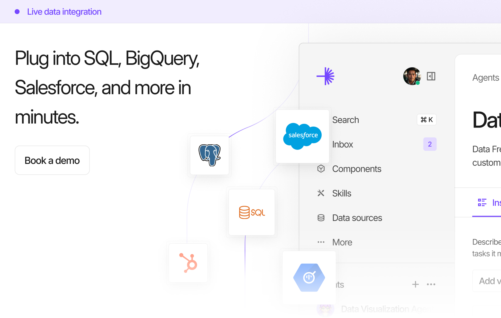 Most employees struggle to access company data and rely on data teams to write queries or create dashboards. This slows down decision-making and keeps data locked away from those who need it most. Wobby’s agents enable business teams to get insights on their own, instantly.