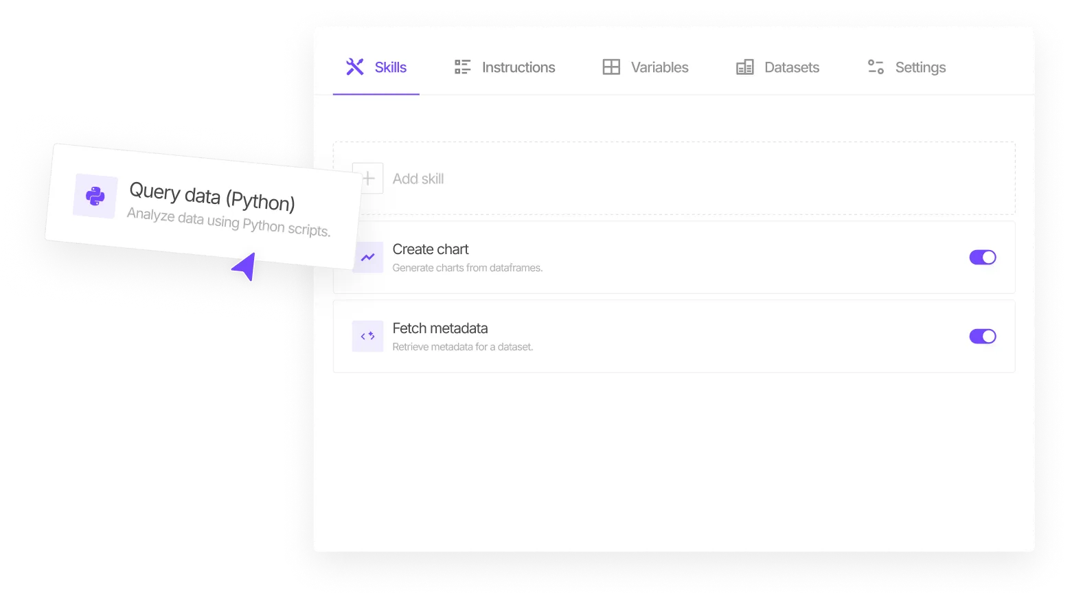 Wobby agents are modular, adaptable, and built with guardrails to ensure reliability. They can operate as independent units or as sub-agents within larger workflows, all while offering full control to data teams.